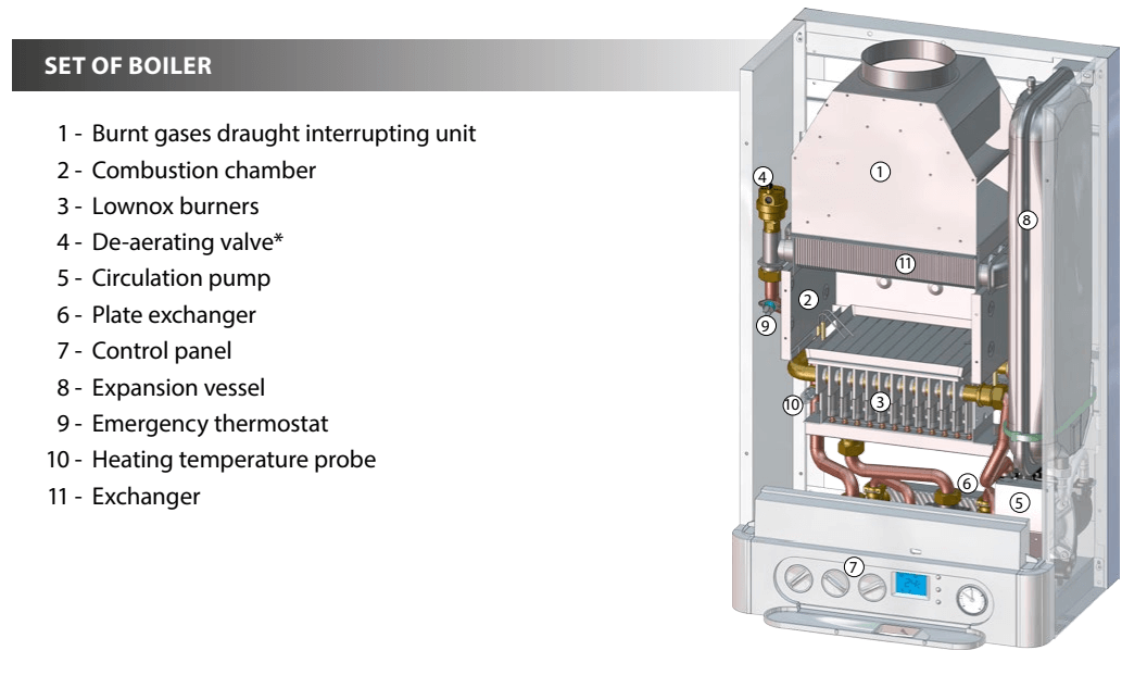شعله درون این محفظه زبانه میکشه در صورتی که بالای این محفظه مبدل اصلی قرار داره و حرارت شعله مبدل رو داغ میکنه و طبیعتا درون مبدل که آب در جریانه آب ولرم میاد و آب داغ خارج میشه!