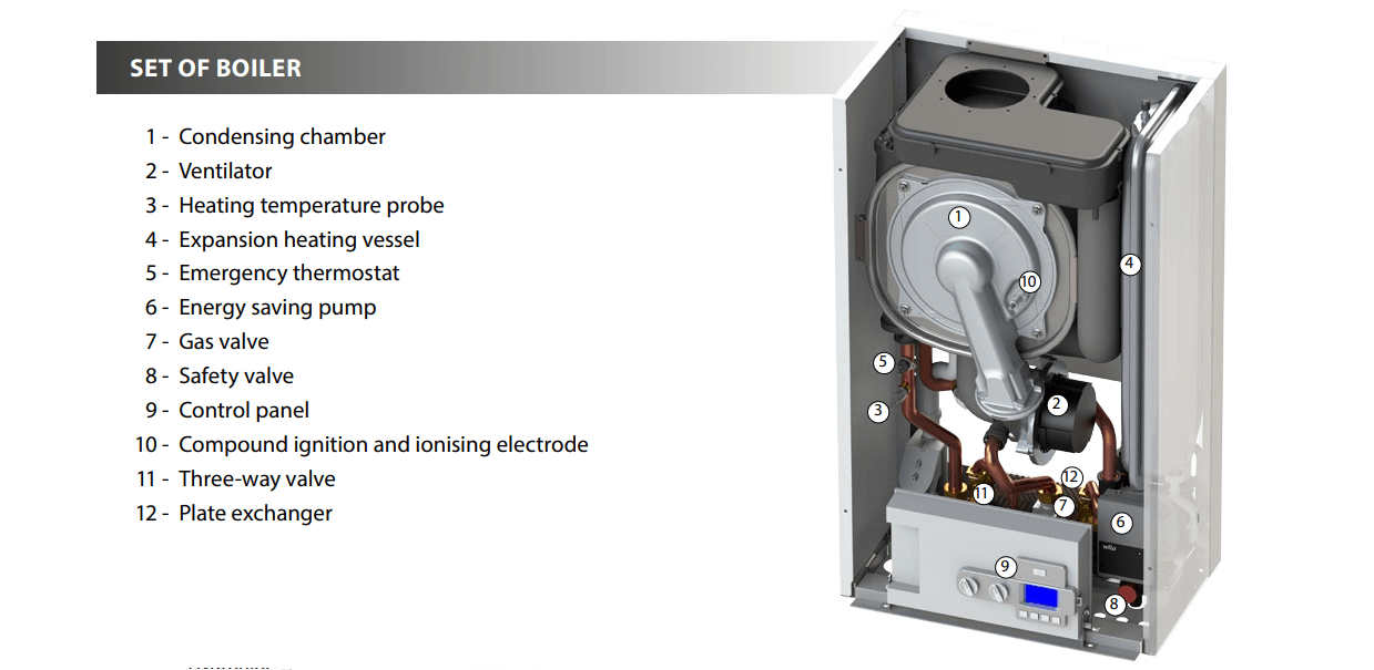در دل پکیج، مبدل و محفظهای قرار دارد که گرمای حاصل از احتراق در آن به آب منتقل میشود.